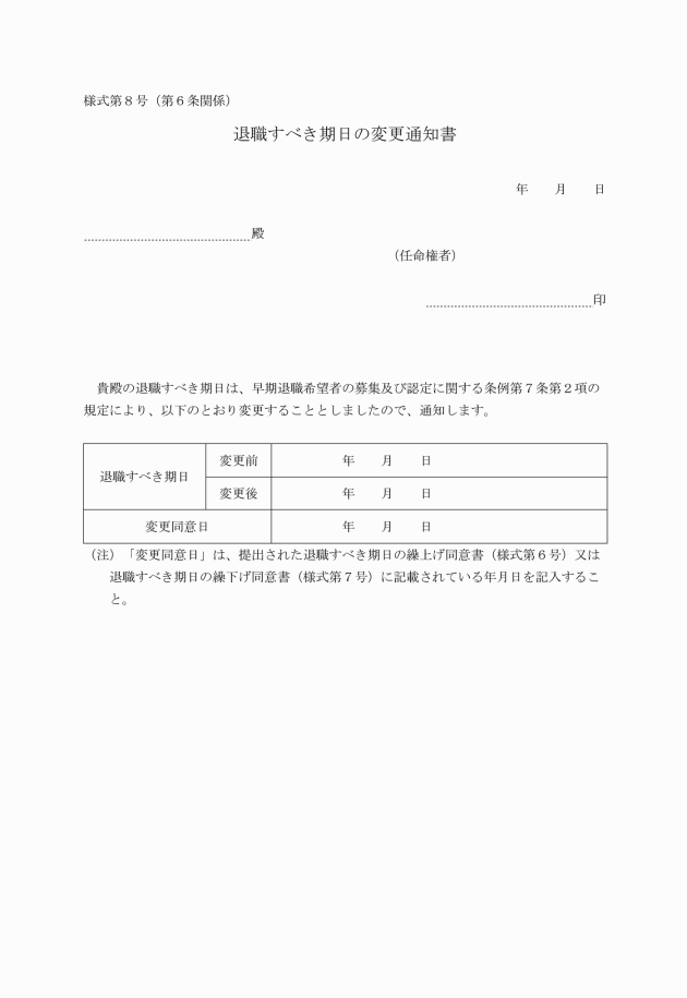 (1) 退職すべき期日を繰り上げるとき 様式第6号