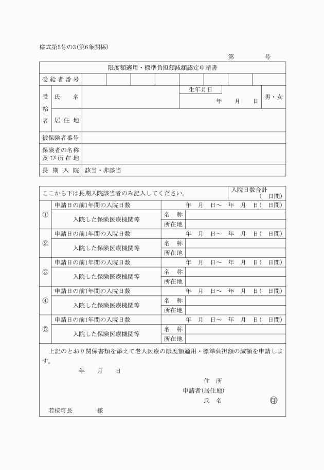 (5) 老人保健標準負担額差額支給台帳(様式第3号の2。以下「標準負担額差額支給台帳」という。)