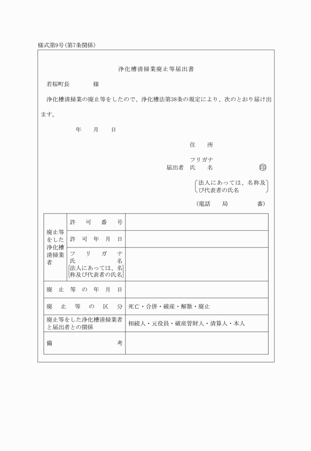 第7条 法第38条の届出は、様式第9号による届出書に許可証を添えて行わなければならない。