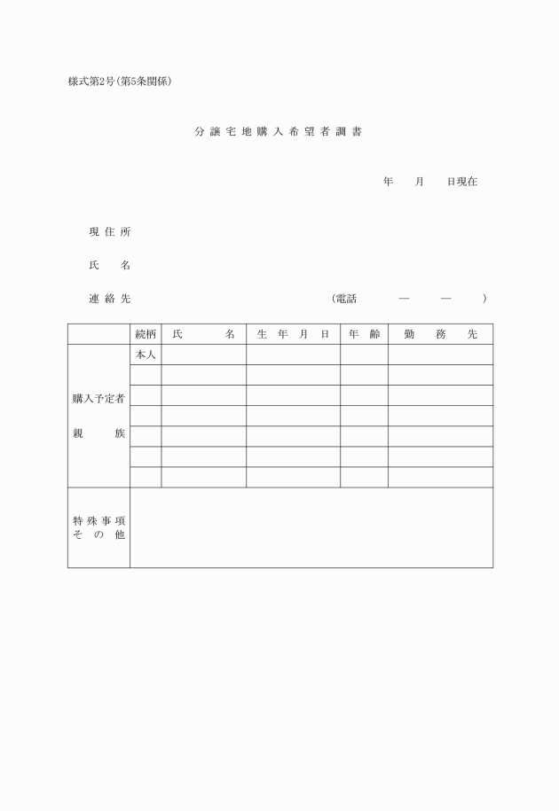 第4条 分譲宅地の購入をしようとする者は、次の各号の条件を満たす者でなければならない。