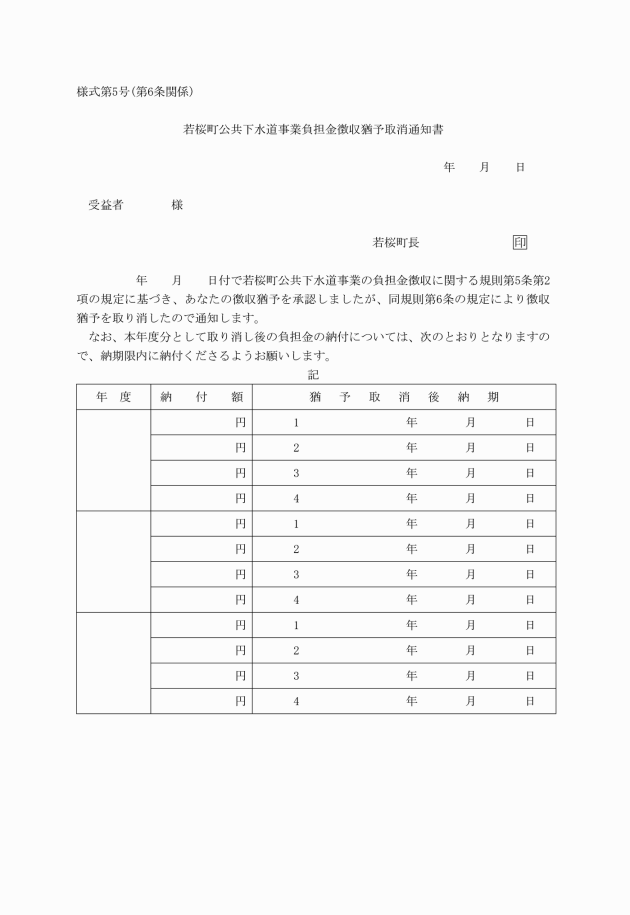 ○若桜町公共下水道事業の負担金徴収に関する規則